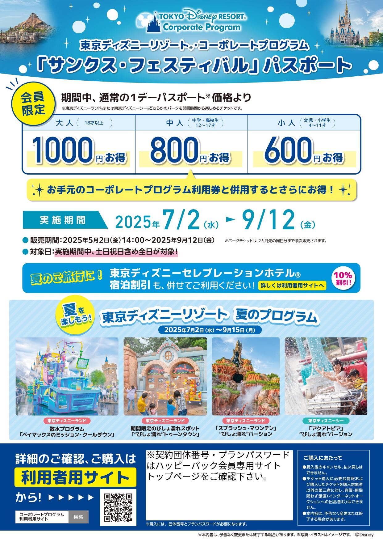 2025年度 東京ディズニーリゾート・コーポレートプログラム「サンクス・フェスティバル」パスポート販売のお知らせ