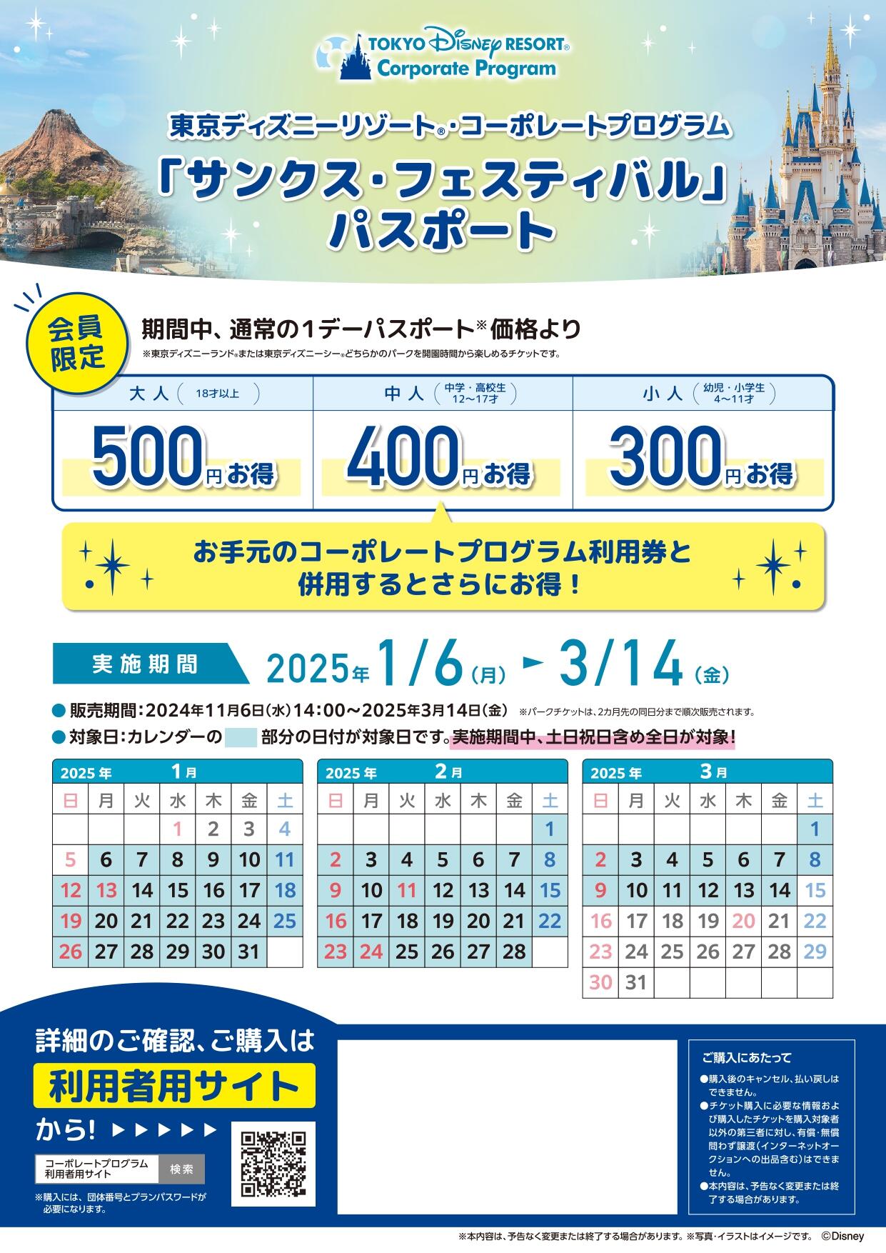2025年度 東京ディズニーリゾート・コーポレートプログラム「サンクス・フェスティバル」パスポートのお知らせ
