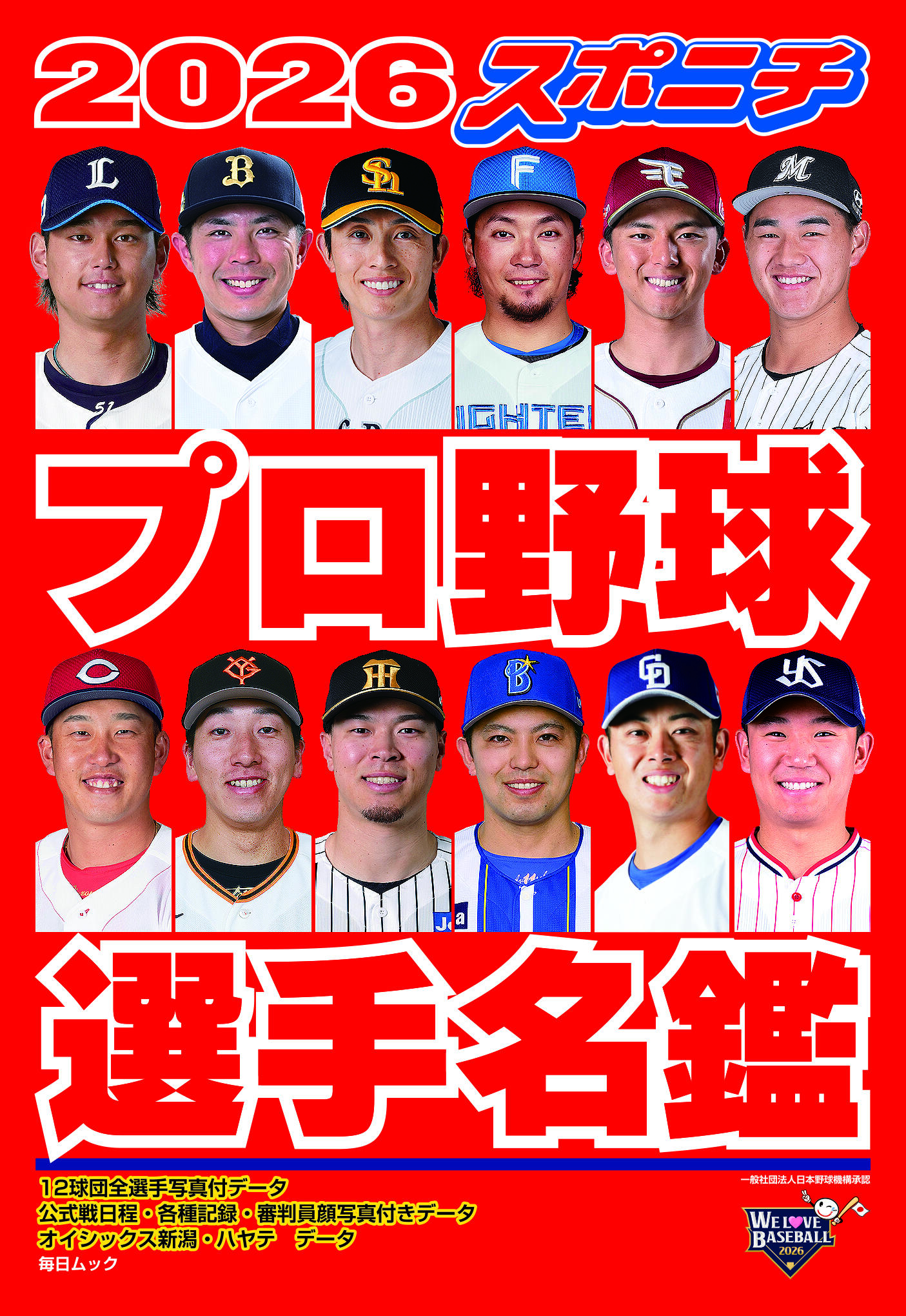 12球団全選手写真付きデータ・公式戦全日程・各種記録が掲載の2026プロ野球選手名鑑を販売します。