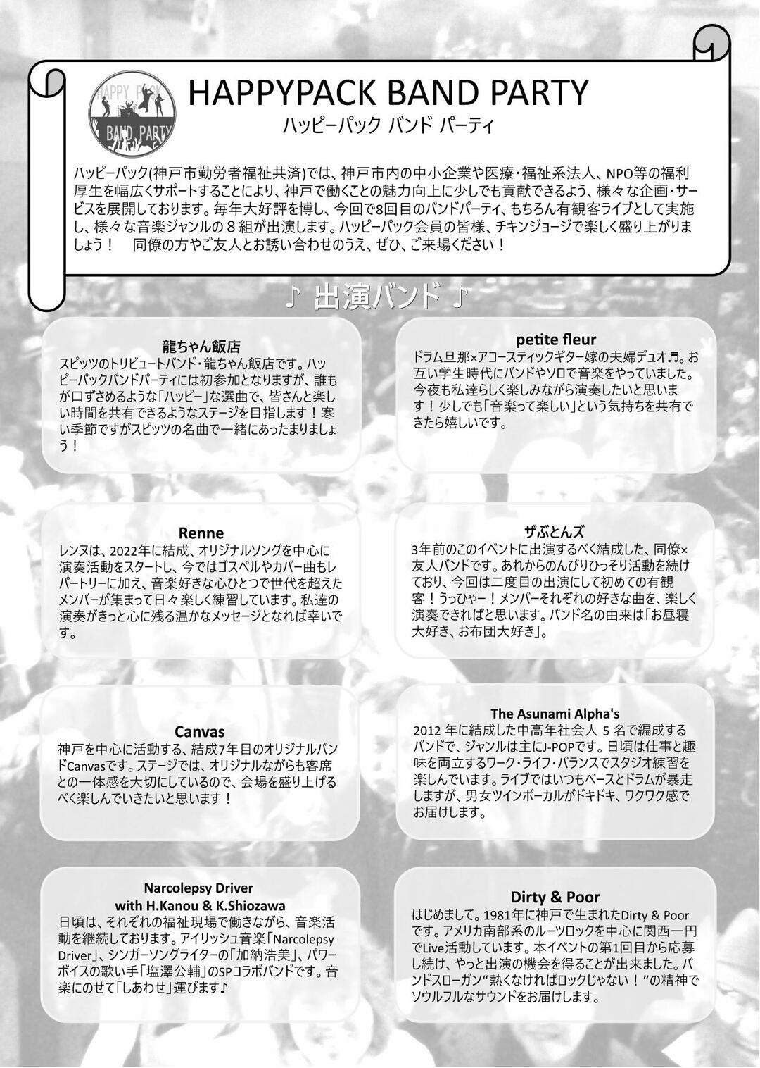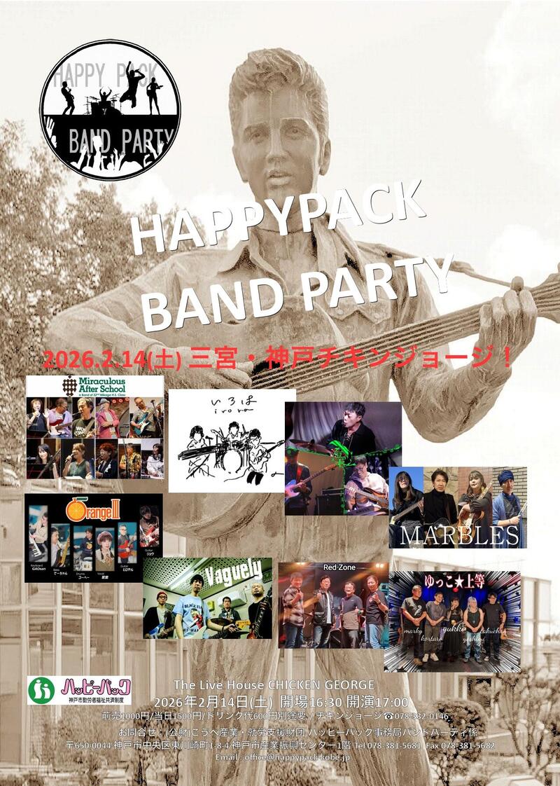 ハッピーパック会員が参加しているバンドによるライブを神戸チキンジョージで開催します!